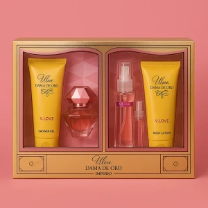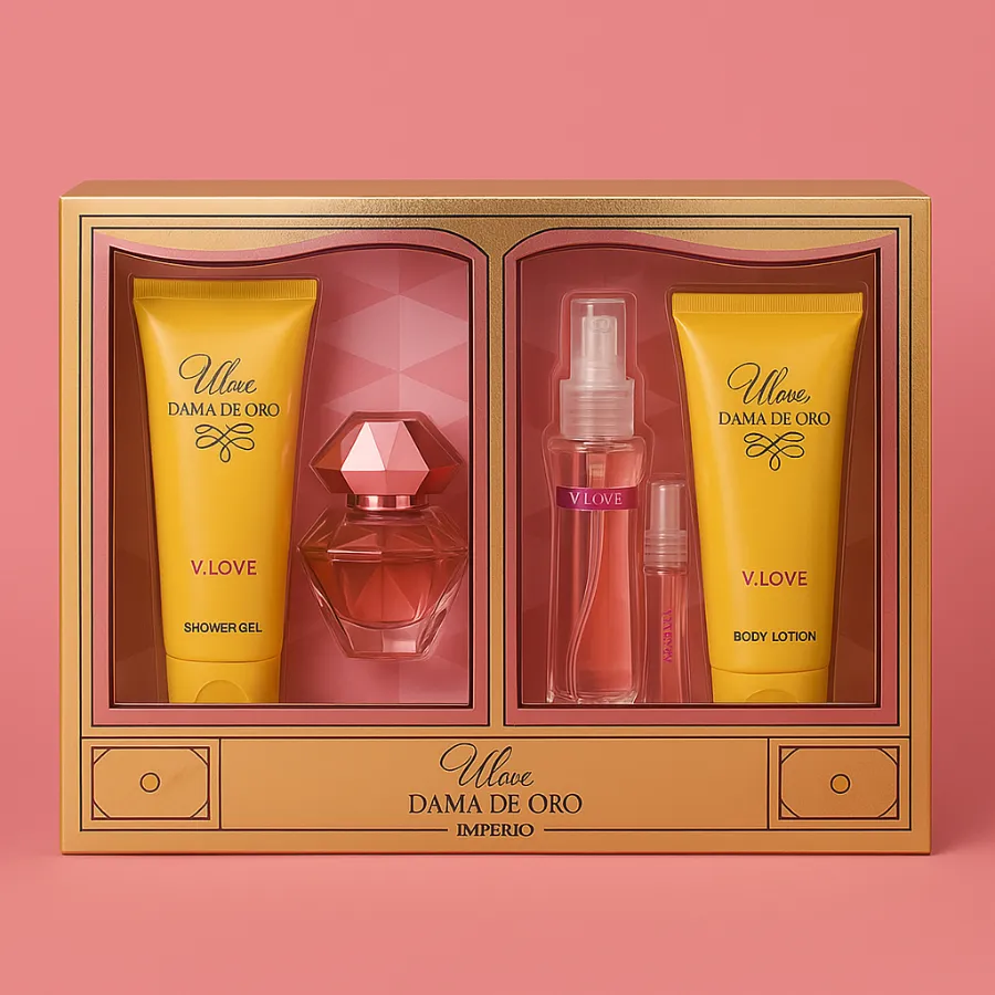 مجموعة DAMA DE ORO هي باقة فاخرة من خمسة منتجات تجمع بين العناية الشخصية والعطر الجذاب لتمنحك تجربة فريدة من نوعها.