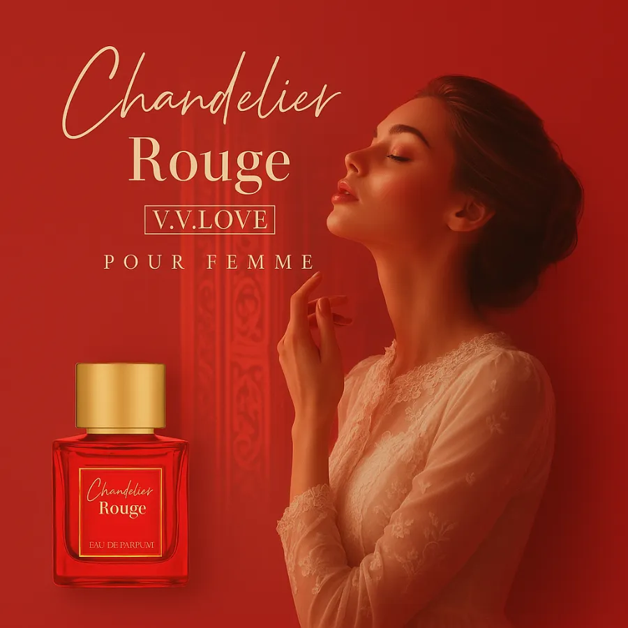 اكتشف الفخامة والجاذبية مع عطر CHANDELIER ROUGE الفريد، الذي يجمع بين الأناقة والرقي في تجربة عطرية لا تُنسى!