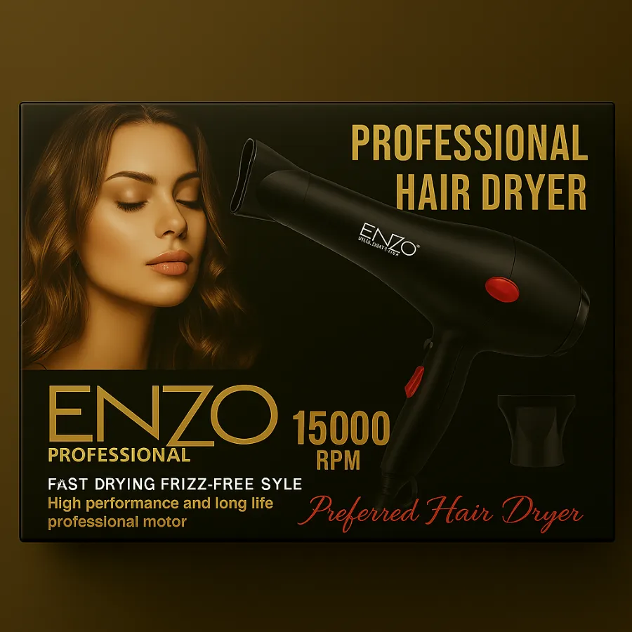 - مجفف الشعر الاحترافي – قوة عالية لتجفيف سريع وفعال دون إلحاق الضرر بالشعر.