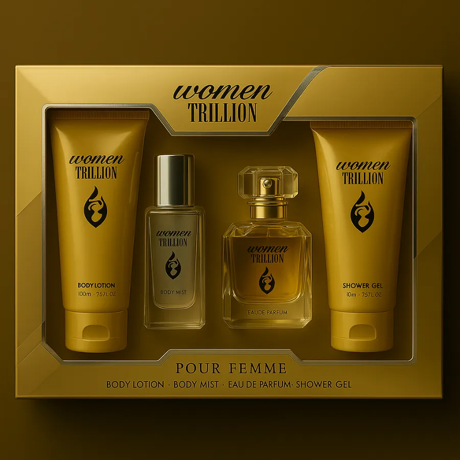 اكتشفي روعة WOMEN TRILLION، الباقة المثالية التي تجمع بين الفخامة والجودة في أربع منتجات رائعة!